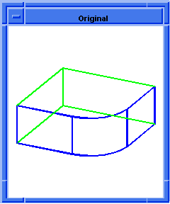 Figure. lop:taper-faces ; Example ; Clear the screen to prepare for the next example. (part:clear) ;; #t (define block2 (solid:block (position -25 -25 -10) (position 25 25 10))) ;; block2 (define blend (solid:blend-edges (pick:edge (ray (position 0 0 0) (gvector 1 -1 0))) 20)) ;; blend ; OUTPUT Original (lop:taper-faces (list (pick:face (ray (position 0 0 0) (gvector 1 0 0))) (pick:face (ray (position 0 0 0) (gvector 0 -1 0))) (pick:face (ray (position 0 0 0) (gvector 1 -1 0)))) (position 0 0 -10) (gvector 0 0 1) 45) ;; #[entity 4 1] ; OUTPUT Result
